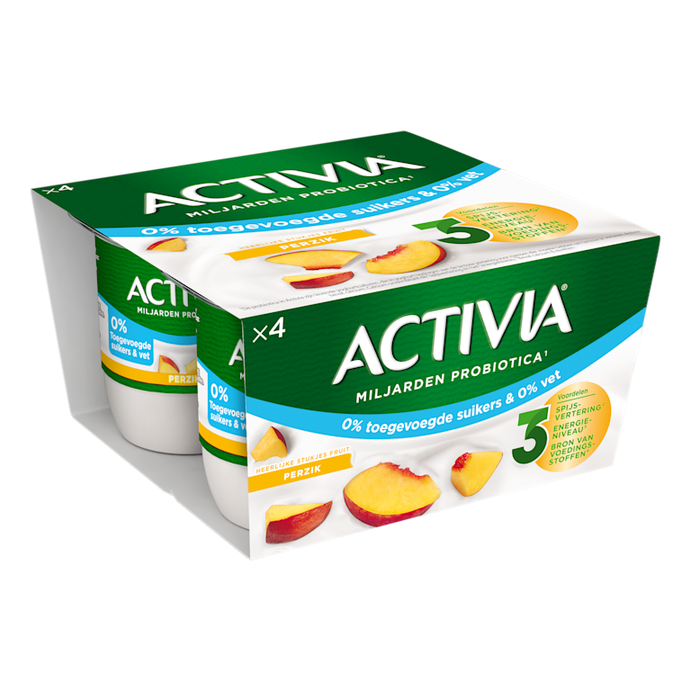 ¹De probiotica in Activia zijn levende yoghurtculturen, die in yoghurt bijdragen aan de lactose vertering voor mensen die moeite hebben om lactose te verteren. Activia bevat calcium. Calcium ondersteunt de ²spijsvertering en het ³energieniveau. ⁴Bevat calcium & eiwitten.
